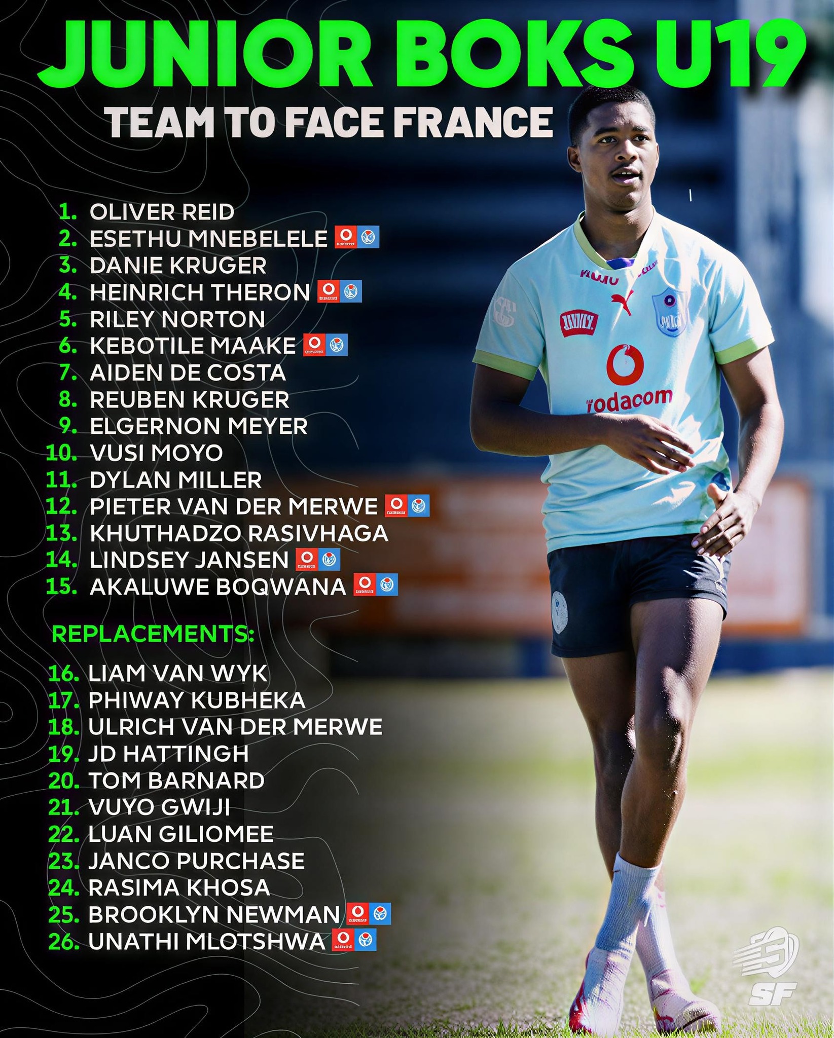 Regarding the selection for Saturday afternoon’s match day squad, which consist of 26 players as agreed to by both teams, Foote said: “It’s always challenging with such a talented group, but there were three things we considered when selecting the group. The first thing was that we tracked the guys the whole year, in the FNB Varsity Cup and the SA Rugby U21 and U19 provincial competitions.