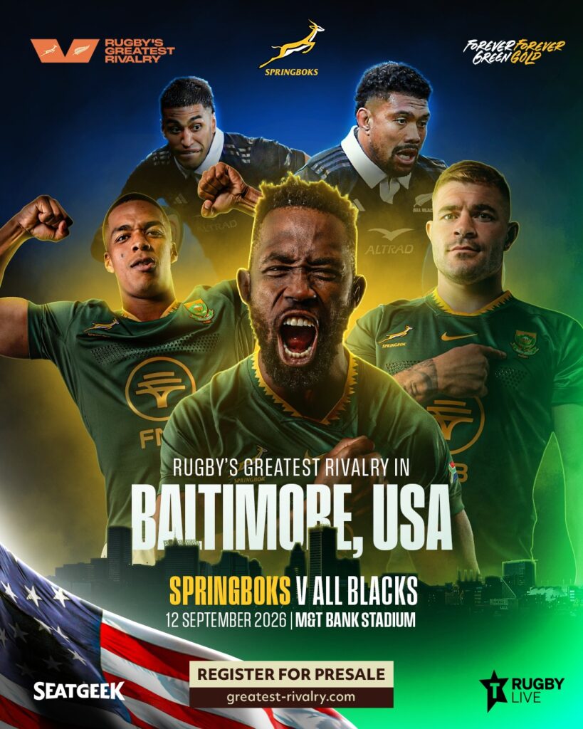 The Springboks will return to the USA for only the third time this millennium when the 2026 edition of Rugby’s Greatest Rivalry – the touring series between the Boks and the All Blacks held every four years – concludes with the historic fourth and final Test in Baltimore, Maryland.