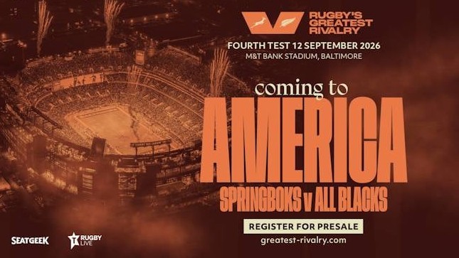 The Springboks will return to the USA for only the third time this millennium when the 2026 edition of Rugby’s Greatest Rivalry – the touring series between the Boks and the All Blacks held every four years – concludes with the historic fourth and final Test in Baltimore, Maryland.